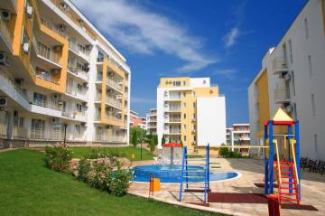 Комплекс Краун Форт Клуб находится между Елените и г. Святой Влас, вторая береговая линия, лишь 100 метров до моря, с лучшей на побережье инфраструктурой, позволяющей комбинировать разнообразный активный отдых с релаксацией. Комплекс расположен на возвышенности в окружении леса и предлагает владельцам апартаментов прекраснейший вид на бухту Солнечного Берега и старый город Несебр.